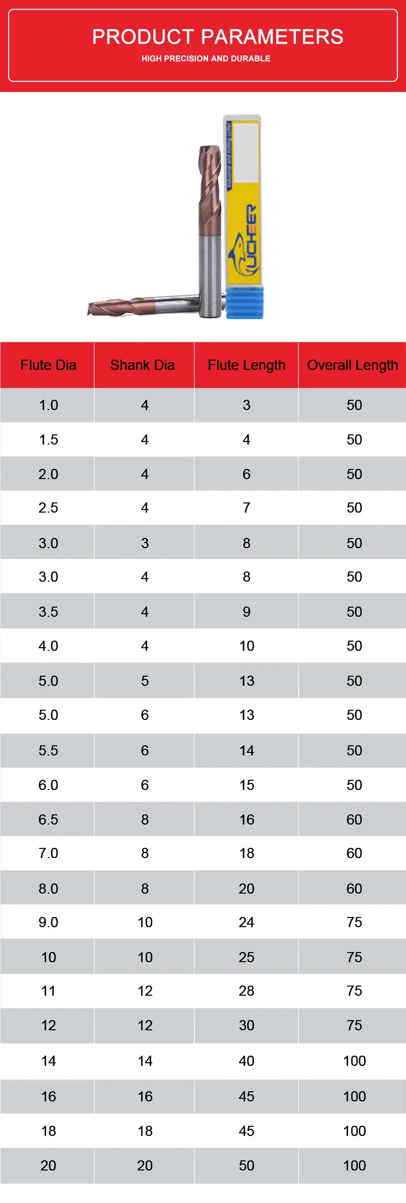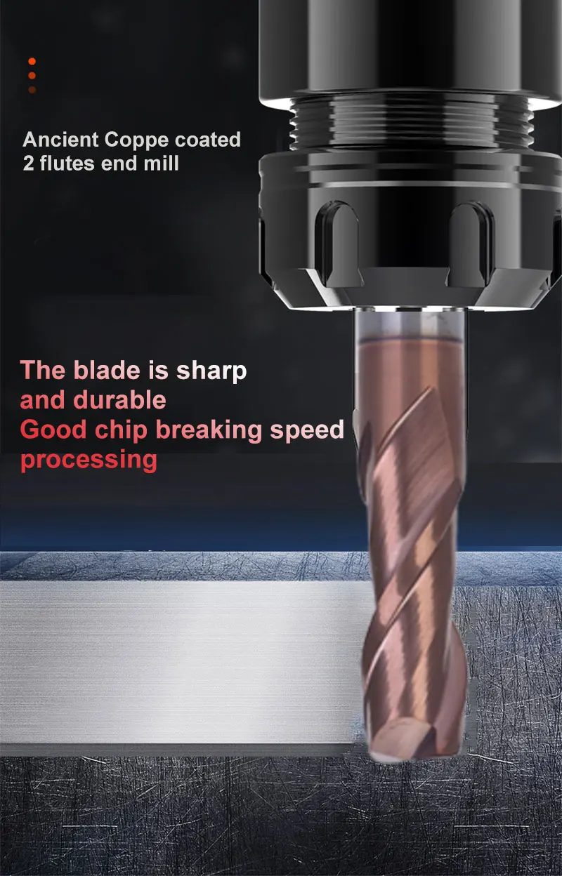 Фрезерный инструмент UCHEER HRC50, твердосплавная фреза из вольфрамовой стали с 2 канавками и плоским дном 46 мм