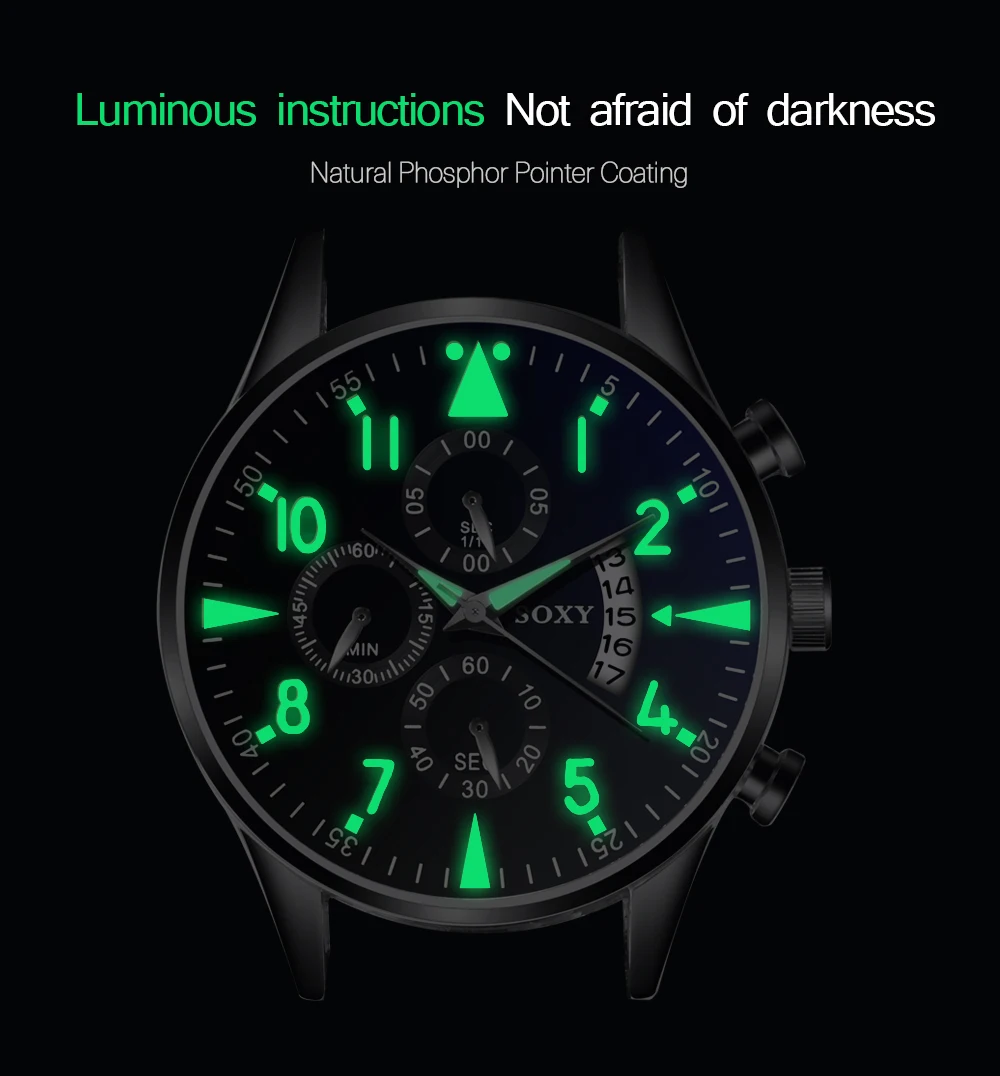 Часы наручные SOXY мужские, светящиеся повседневные, с браслетом из нержавеющей стали, с тремя глазами, с отображением даты