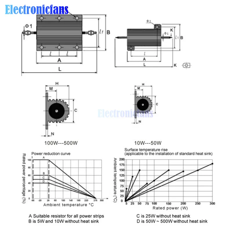Алюминиевый металлический корпус мощности, катушка сопротивления, ± 100, 0.1R, 0.5R, 1R, 2R, 6R, 8R, 10R, 20R, 100R, 1K, ohm, 5% W. Все в порядке.