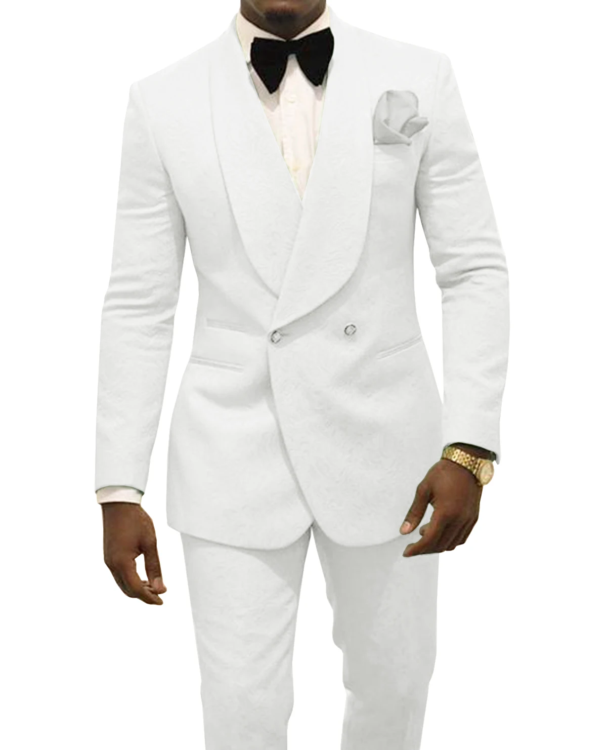 Смокинг для жениха с белым узором мужской, шаль с лацканами, 2 пред...