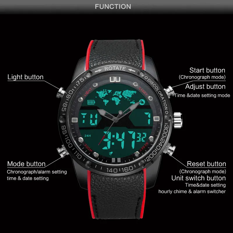 Часы наручные BOAMIGO Мужские кварцевые, модные спортивные светодиодные цифровые аналоговые, водонепроницаемые в стиле милитари для плавания