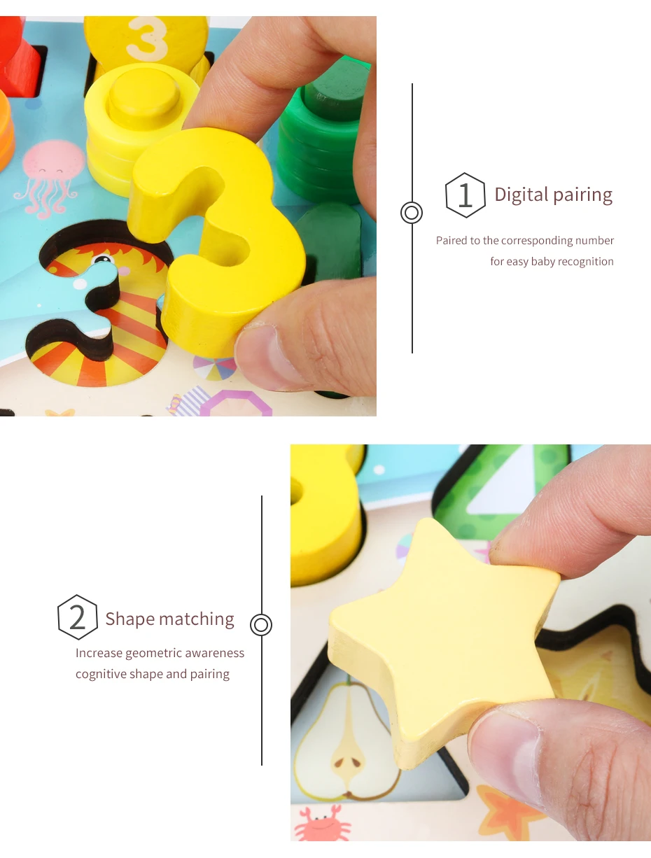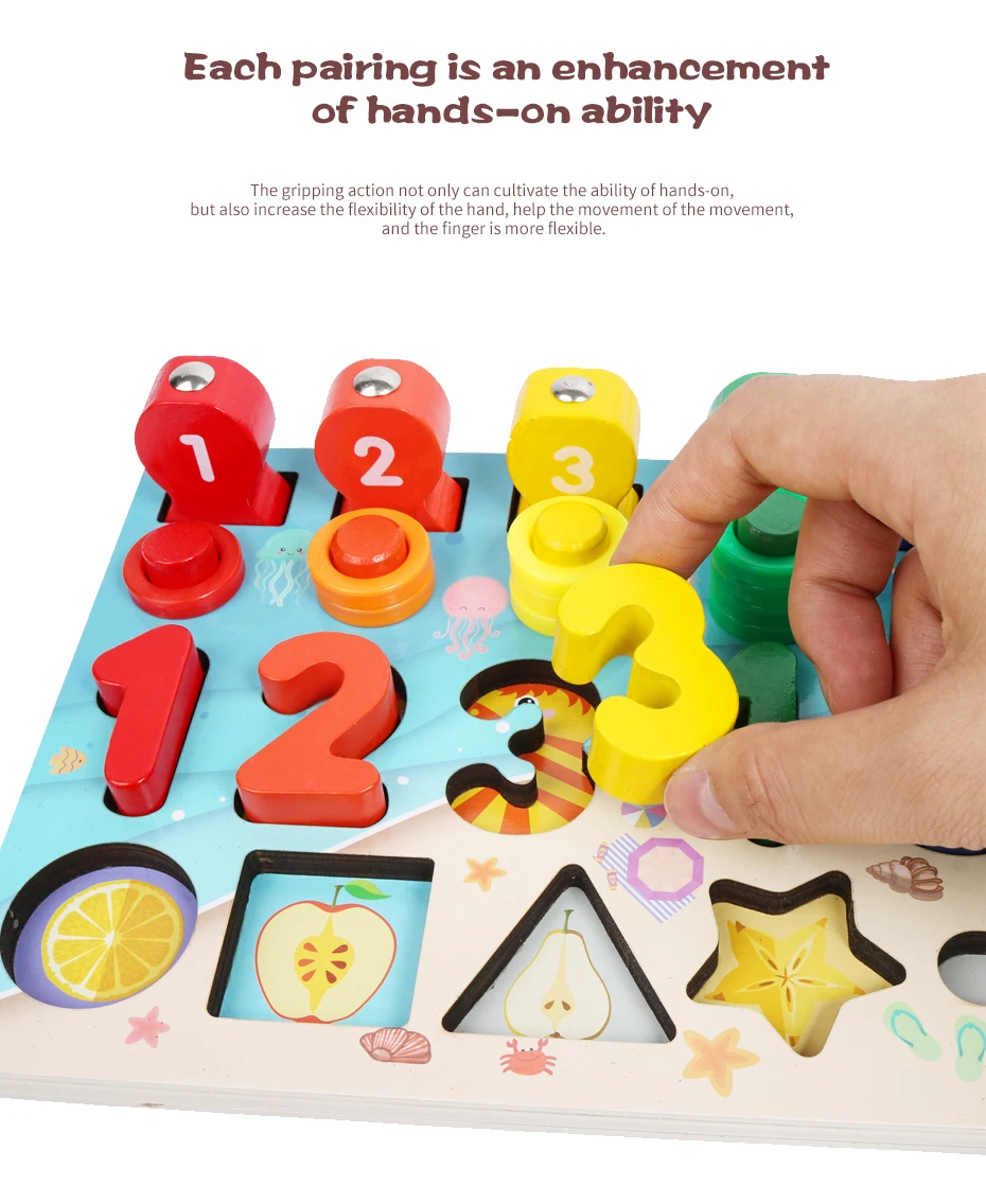 Деревянные пазлы Монтессори, многофункциональная математическая дос...