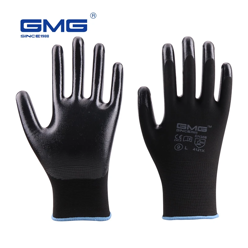 Перчатки GMG черные красные белые полиэфирные Черные Серые нитриловые гладкие защитные рабочие перчатки механические перчатки для работы 6 пар