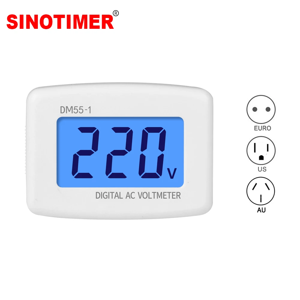 Цифровой вольтметр переменного тока 80-300 В, вилка ЕС, США, Австралии, вольтметр, тестер напряжения в розетке, ЖК-дисплей, измеритель напряжения 110 В, 220 В, DM55-1