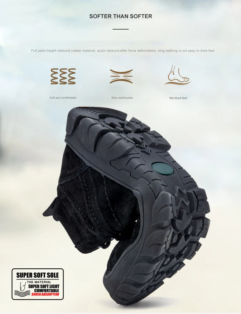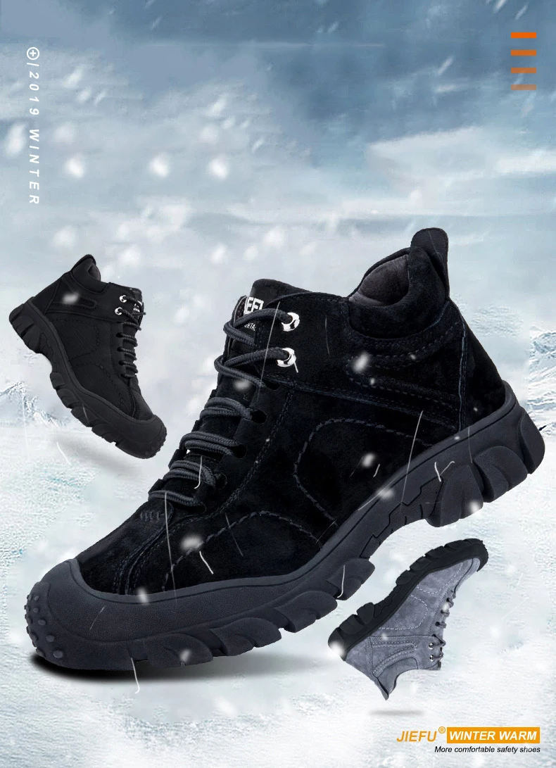 Зимняя мужская Рабочая защитная обувь со стальным носком; мужские непромокаемые бархатные теплые кожаные водонепроницаемые высокие дышащие рабочие ботинки