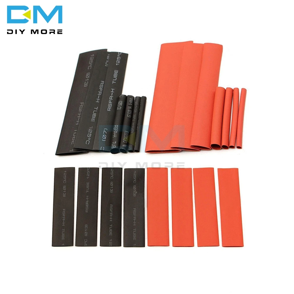 127 шт Красный Черный Полиолефиновый термоусадочный трубопровод кабель трубчатый комплект обмотки провода набор PE термоусадочный комплект трубок кабельные рукава