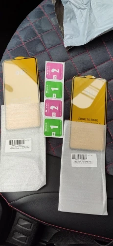 Заказывал 2 вида стёкол. У одного в комплекте были влажная и сухая бумажные салфетки, стикер от пыли и жидкость от белой полосы. У второго стекла, по которому делаю обзор, были только салфетки! В комплекте 2 стекла были упакованы в твердую пенопластовую коробку, но одно было с трещиной. Половину денег мне вернули. Стеклоыглядят надёжно, но посмотрим как в эксплуатации. Из минусов: по периметру стекла чёрная каёмка, которая немного скрадывает изображение.