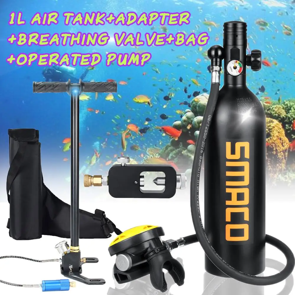 Кислородный баллон SMACO 1 л для дайвинга, адаптер для кислородного резервуара, дыхательный клапан, воздушный насос для подводного плавания, оборудование для дайвинга