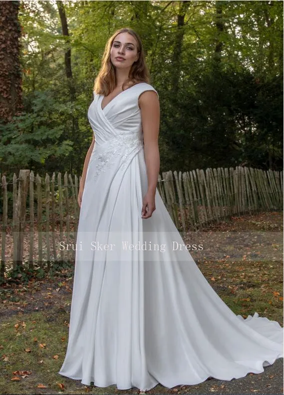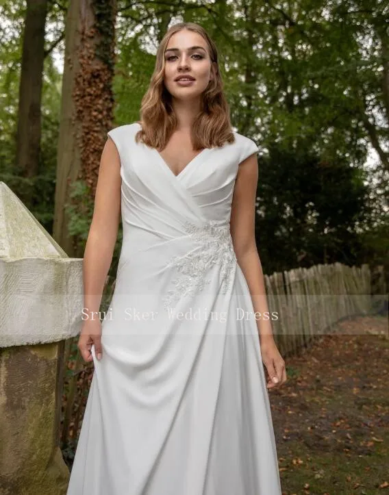 Дешевое свадебное платье женское атласное ТРАПЕЦИЕВИДНОЕ свадебное платье с рюшами лиф простое свадебное платье белое свадебное платье