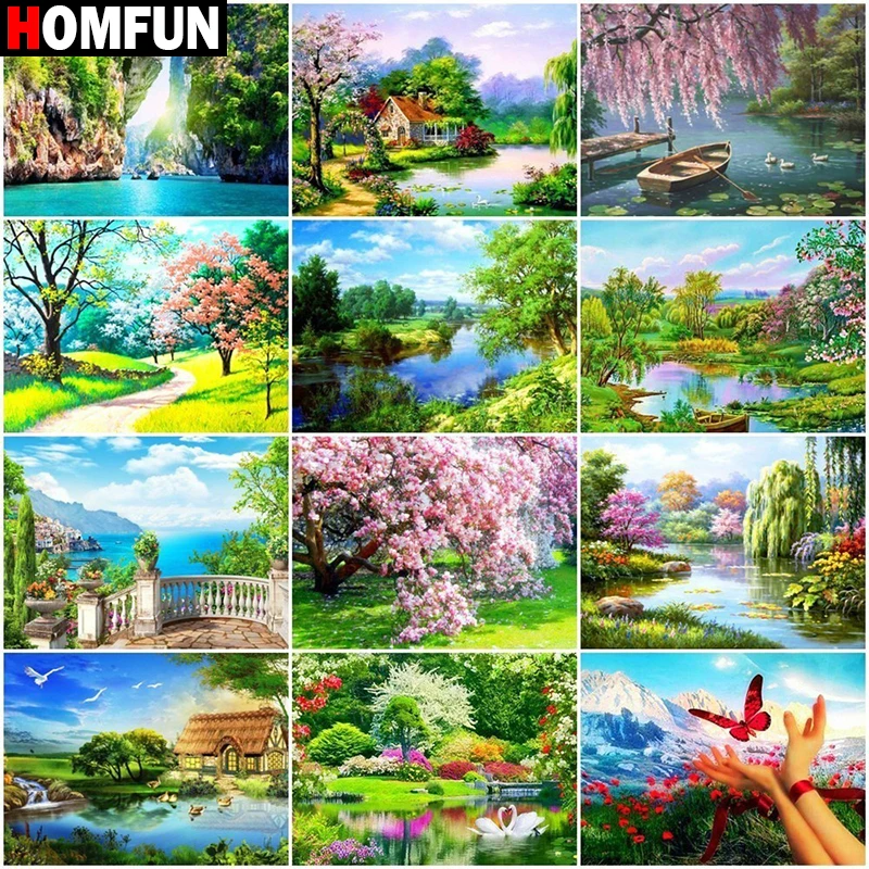 Алмазная живопись HOMFUN, картина с квадратнымикруглыми стразами, красивый пейзаж, вышивка крестиком, 5D Стразы