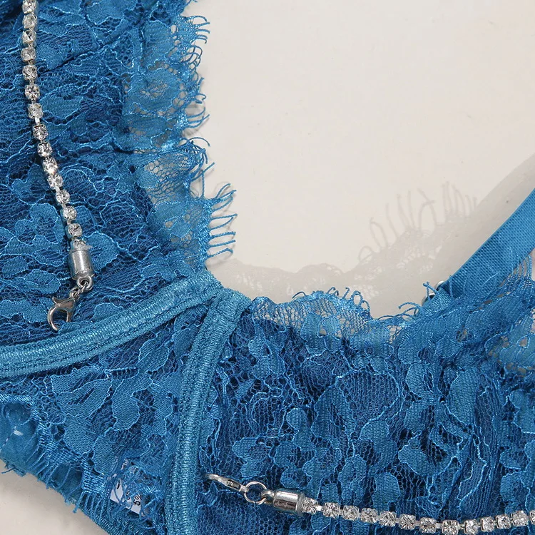 Комплект женского кружевного нижнего белья с блестящими кристаллами