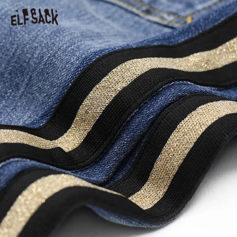 Женские прямые джинсы-карандаши ELFSACK, синие однотонные потертые облегающие офисные брюки на каждый день в стиле пэчворк, зима 2019
