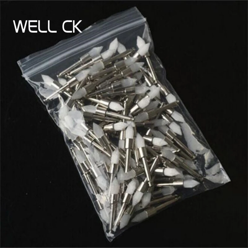 100 шт.компл. стоматологические материалы, кисть для полировки, цветная профилактика, Белый Нейлоновый конический клапан, стоматология, odontology, конический стоматологический зубной клинок