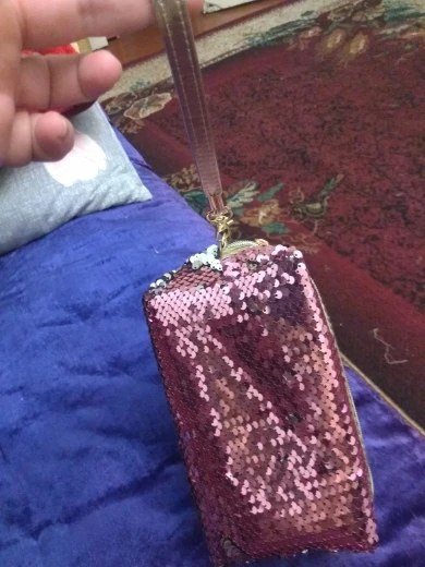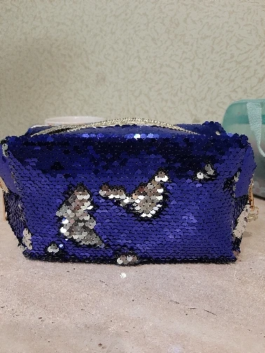 Эта косметичка с блестками привлекательная и красивая, хотя я ожидала получить двухцветный синий/зеленый (как показано в рекламе), но вместо этого я получила двухцветный синий/серебристый, тем не менее, цвет синий/серебристый по-прежнему яркий и яркий. Блестки полны и плотно сшиты. Хорошее качество изготовления и шитья. Хорошее качество. Эта косметичка имеет дополнительный небольшой ручной слинг, чтобы прикрепить к боковой стороне сумки, которая мне нравится, так как я купил много других похожих косметических сумок с блестками, которые выглядят так же, но не имеют маленьких ручной ремень... Для меня это имеет большое значение. Цена очень хорошая. Быстрая доставка. Ценю быстрый ответ продавца, когда я задаю вопросы, поэтому мне нравится ее обслуживание. Я определенно рекомендую этого продавца и ее косметичку с блестками.