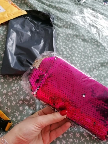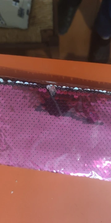 Очень яркая,прямо кричащая косметичка,но красивая.Вмесительная,влезет всё что нужно.Сверху пайетки переливаются в 2 цвета-розовый и серебристый.Мне понравилось.До Ташкента шёл правда долговато-2месяца.Продавец порядочный.Всем кто любит яркое-товар рекомендую.