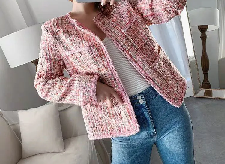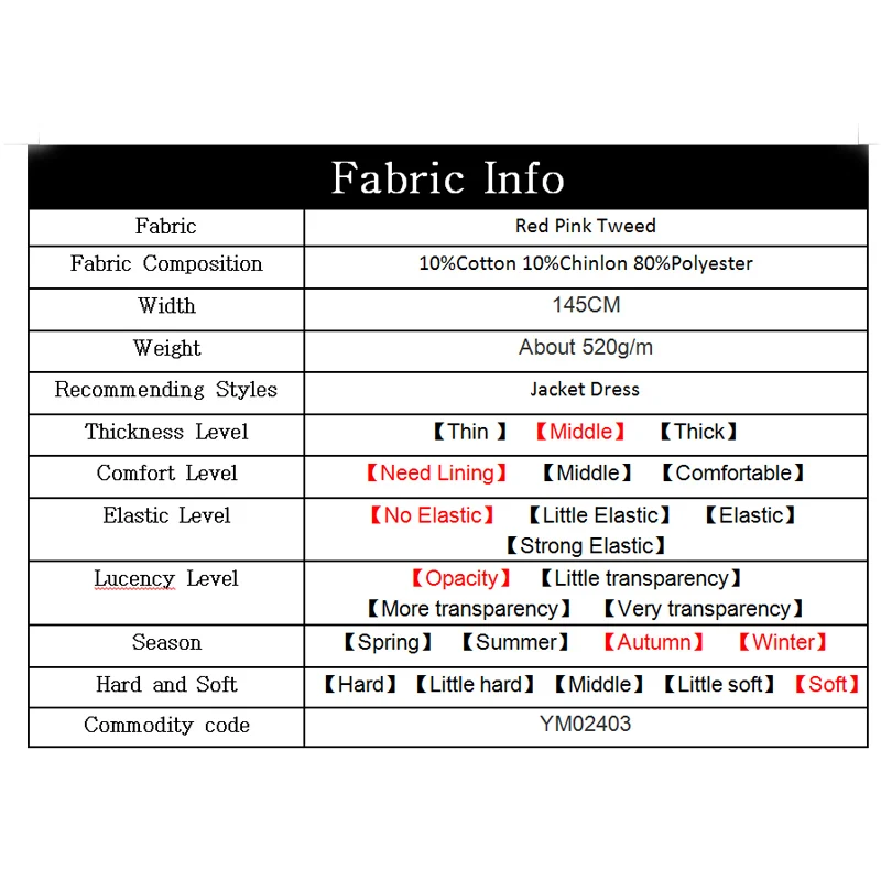 Ткань из твида красного и розового цвета, осенняя куртка, платье, костюмы, материалы для одежды, швейная ткань, бесплатная доставка