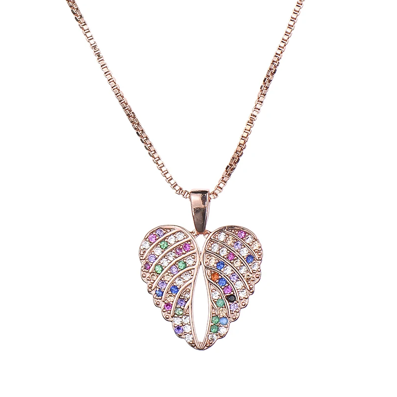Ожерелье Pipitree женское, с подвеской в виде Ангела украшения с цирконами, ожерелья с крыльями, медное, разноцветное, с фианитами