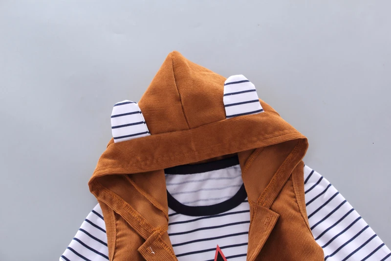 Детский спортивный костюм для мальчиков, повседневный жилет с капюшоном и штаны на весну и осень, 3 шт.компл.