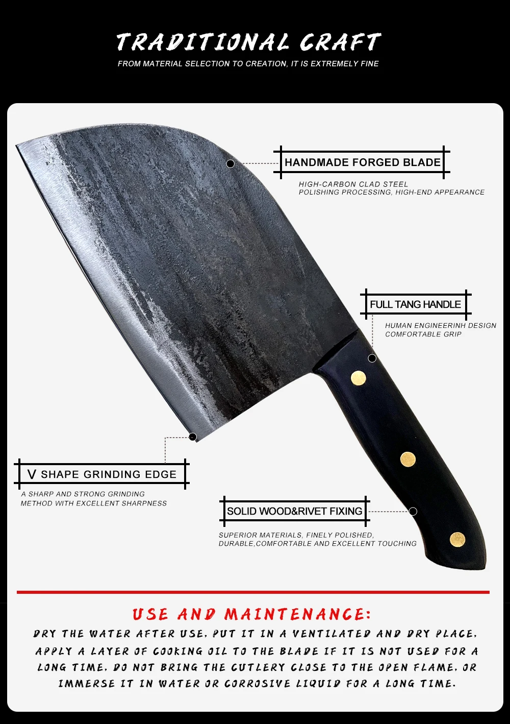 Обратите внимание:Весь процесс производства этого ножа полностью ручной.