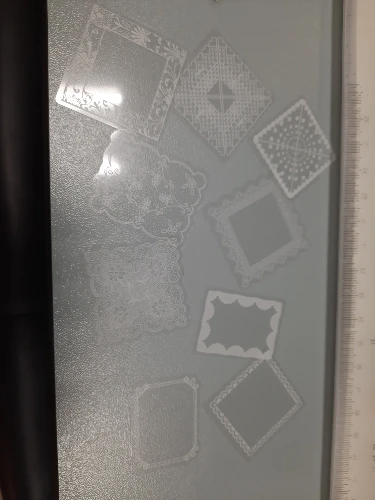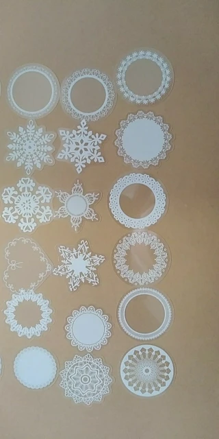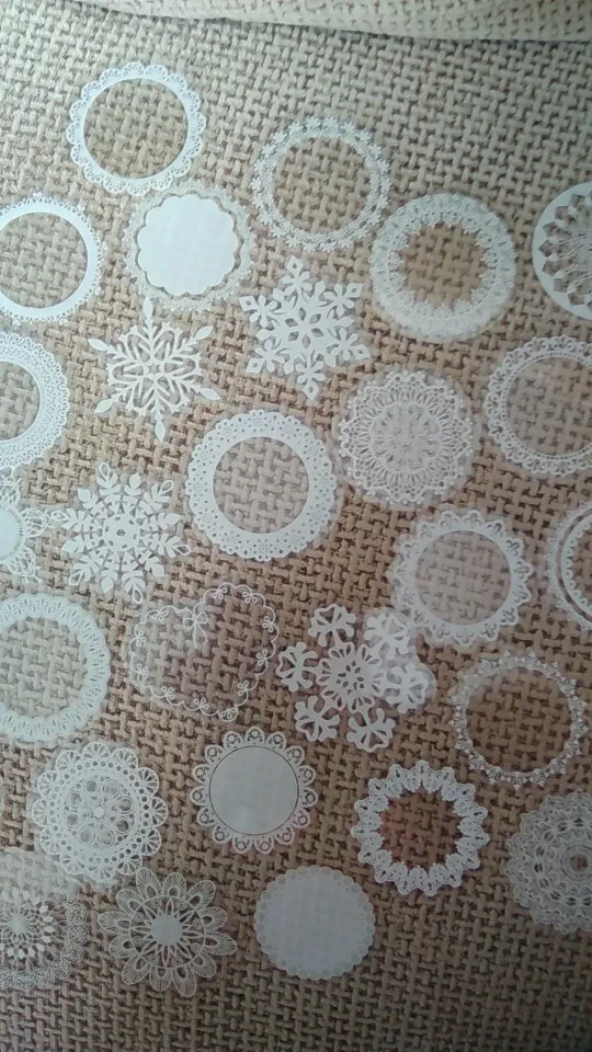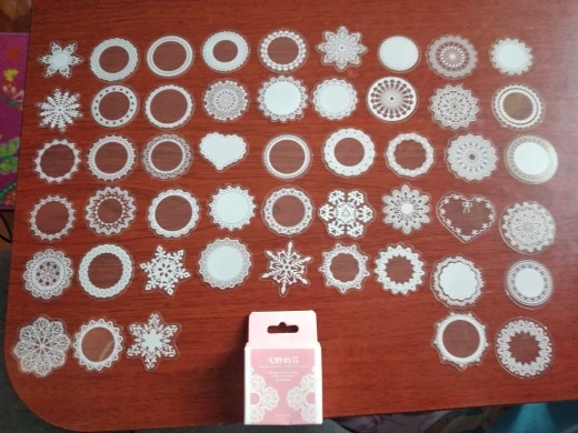 Милая наклейка в виде маленькой рамки. Белый рисунок на прозрачном глянцевом фоне. Без повторов. Большие наклейки: 3,6x3,6 см. Не слишком сложно отделить. Я сохраню подложку для использования при изготовлении тегов с windows. Доволен своей покупкой.