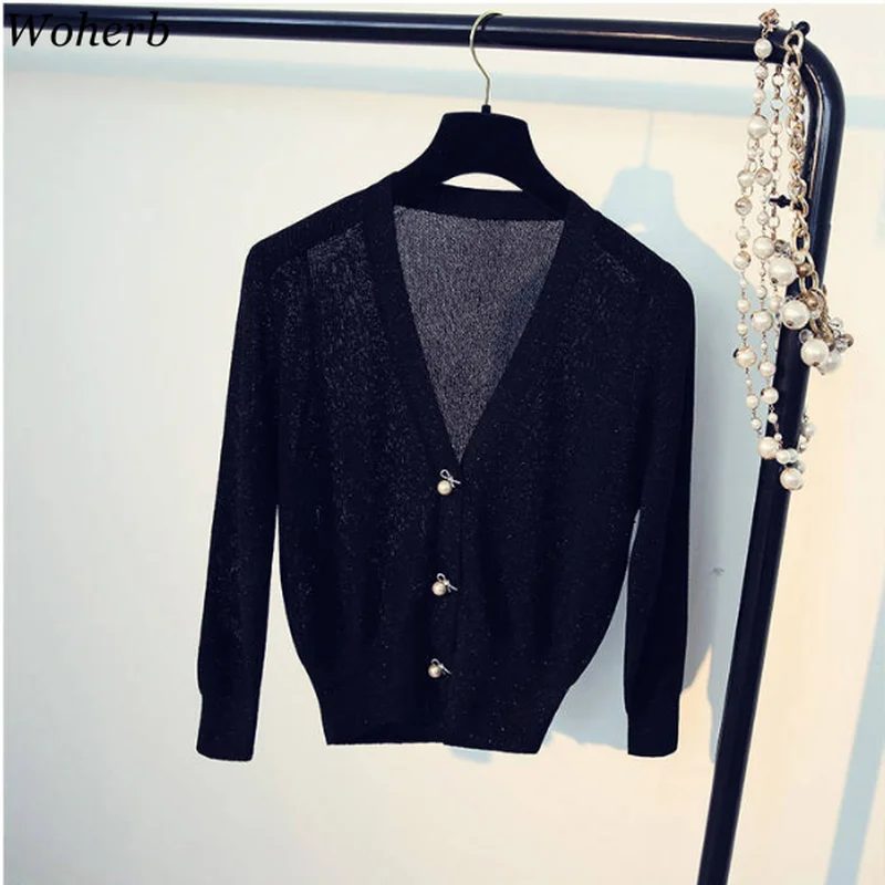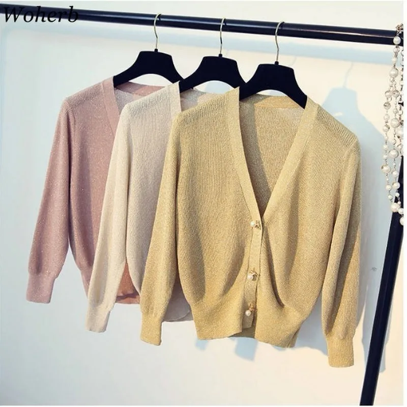Woherb осенние женские кардиганы 2020, модный тонкий женский вязаный свитер, корейский свитер с V-образным вырезом, женский свитер на пуговицах с длинным рукавом
