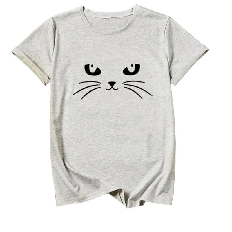 Женские футболки с рисунком кошки Kawaii, милые футболки с кошками для мамы, футболки из чистого хлопка с коротким рукавом, модные стильные топы для девочек, Прямая поставка