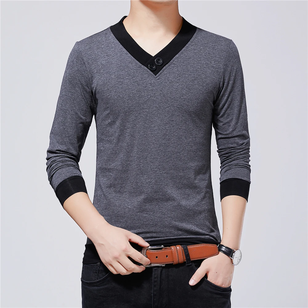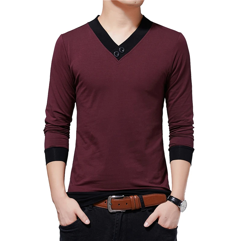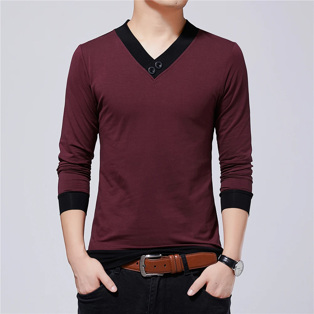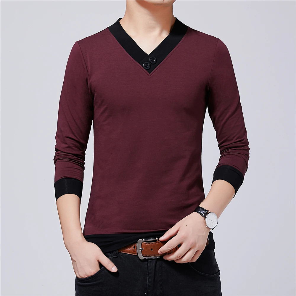 Бренд BROWON, Мужская одежда, осень 2021, Новая повседневная мужская футболка с v-образным вырезом, Лоскутная цветная дизайнерская футболка, мужские футболки, большие размеры 5XL