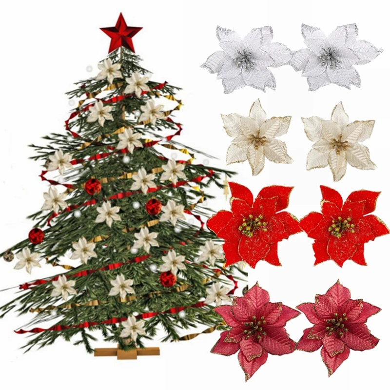 Искусственные Рождественские цветы, блестящий пуансеттия, искусственные цветы для рождественской елки, украшения для самодельного изготовления, домашний, Свадебный, Рождественский Декор