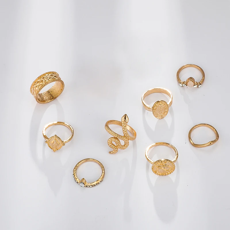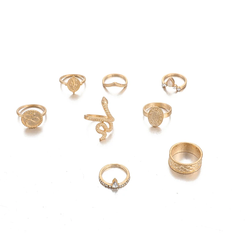 Богемное кольцо docona, в виде змеиной монеты, для женщин, цыганская Геометрическая резьба на костяшки Комплект колец на фалангу, ювелирные изделия, 8 шт.компл. 8852