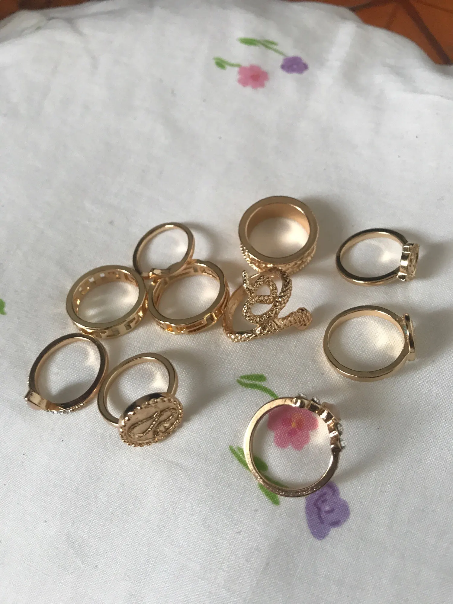 красивые колечки, размеры разные, два больших и остальные маленькие более менее, на ~17 размер самое то