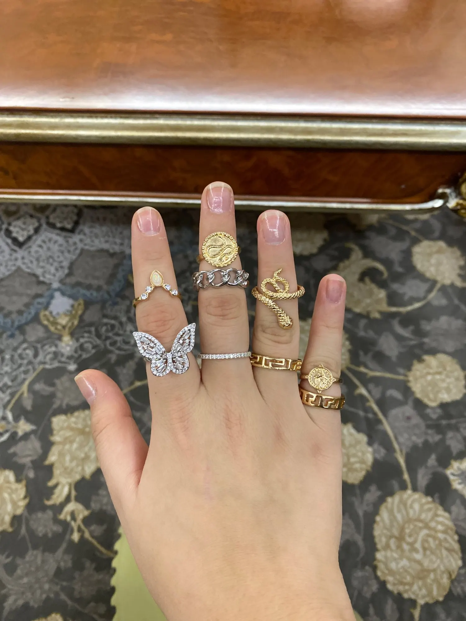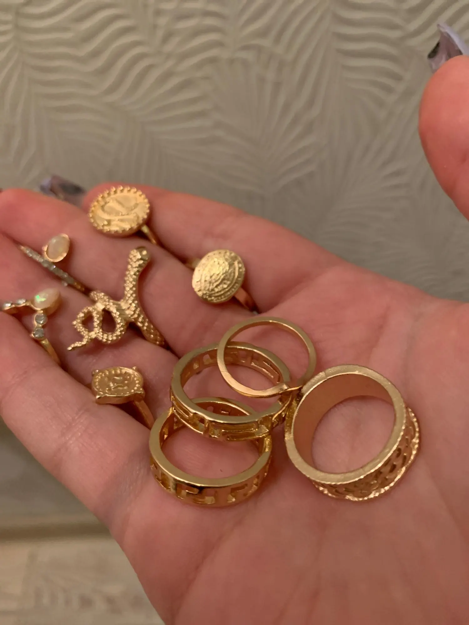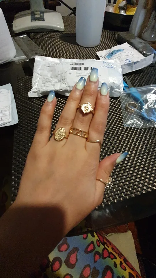 Все пришло за 3 недели! отправили не в то отделение почты, но я не думаю что это вина продавца. Кольца классные, выглядят конечно не дорого, видно что не золото, но как добавление к образу мне подойдёт! В общем за сотку самое то, берите!