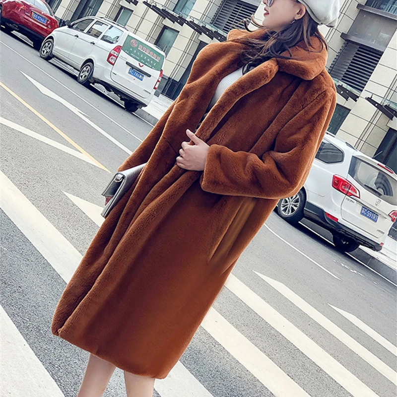 Зимнее пальто из искусственного меха с мишкой Тедди, длинное, плотное, пушистое, теплое, розовое, с лацканами, Женское пальто желтого цвета, размера плюс