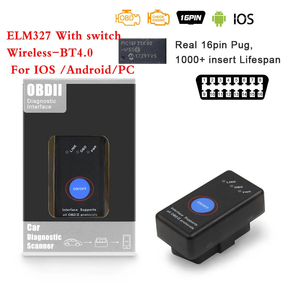 Автомобильный диагностический сканер ELM 327 V1.5 PIC18F25K80 obd2, диагностический сканер ELM327 V1.5 для AndroidIOS OBD 2 OBD2, считыватель кодов