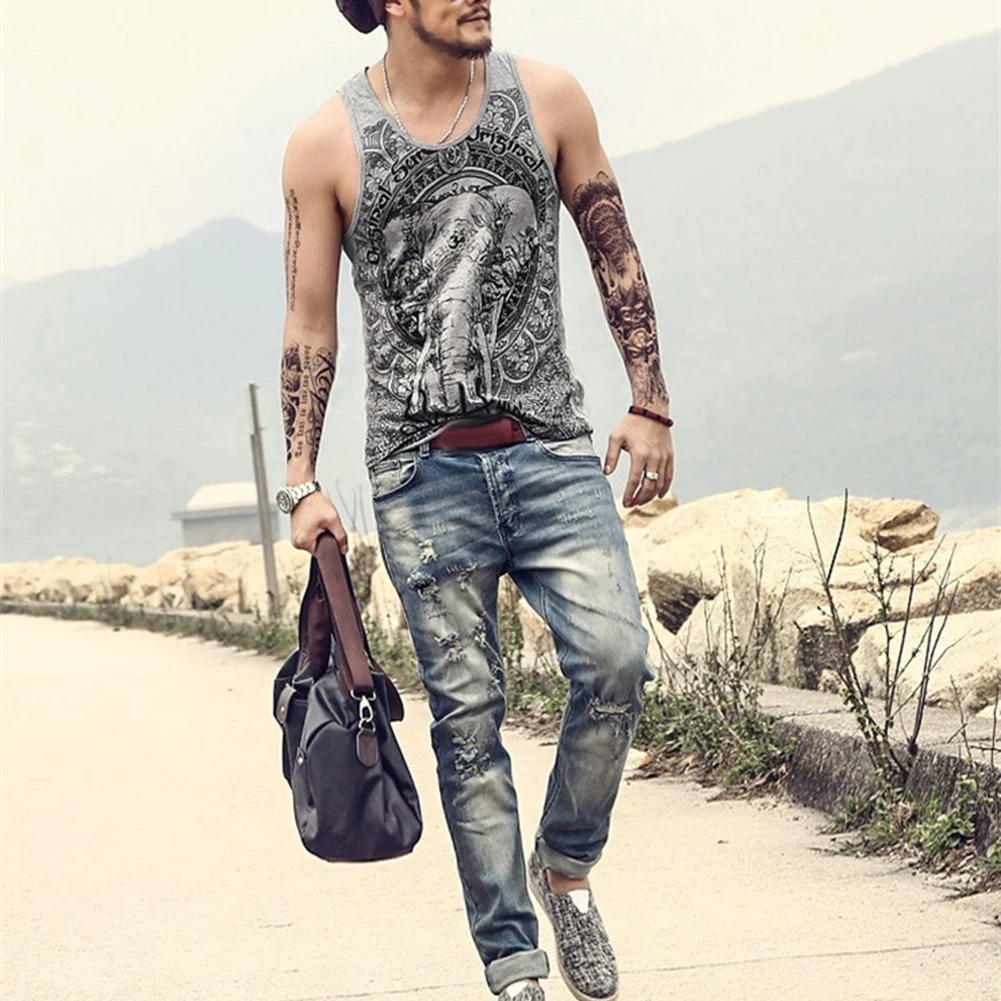 Серый Для мужчин майка Повседневное Фитнес фуфайки Для мужчин s без рукавов с открытым ртом, жилет в стиле хип-хоп хлопковая майка с принтом "Слон" 2019