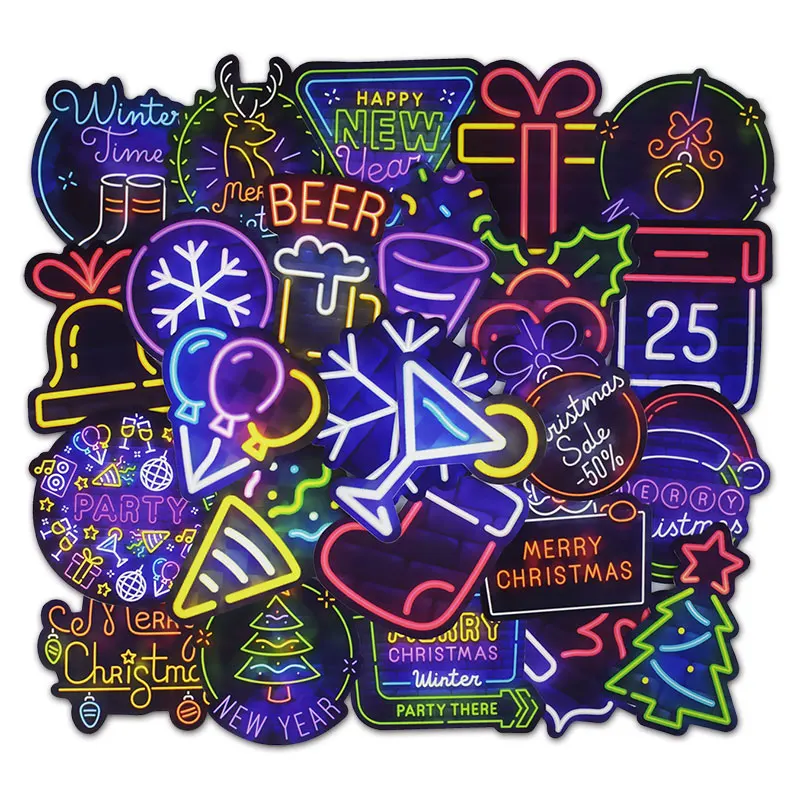 25 шт. флуоресцентные рождественские неоновые наклейки для мотоцикла ноутбука автомобиля бампер велосипед Детские игрушки DIY граффити водонепроницаемый стикер