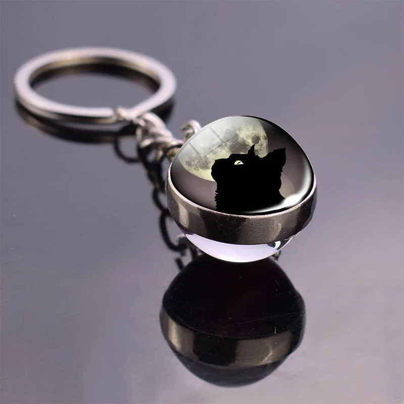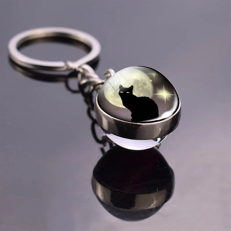 Двусторонний брелок для ключей для мужчин и женщин, ювелирное изделие с черной кошкой, тыквой, головой летучей мыши, полнолунной поверхностью, подарок на Хэллоуин, модные аксессуары