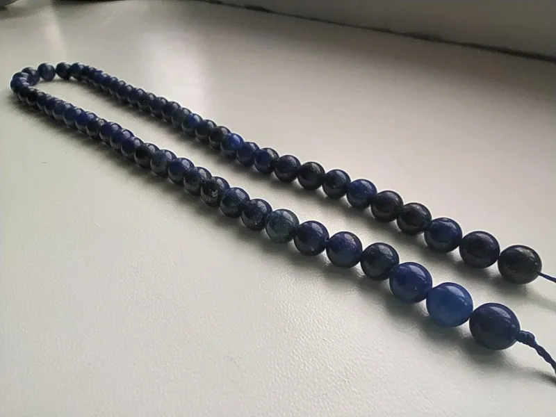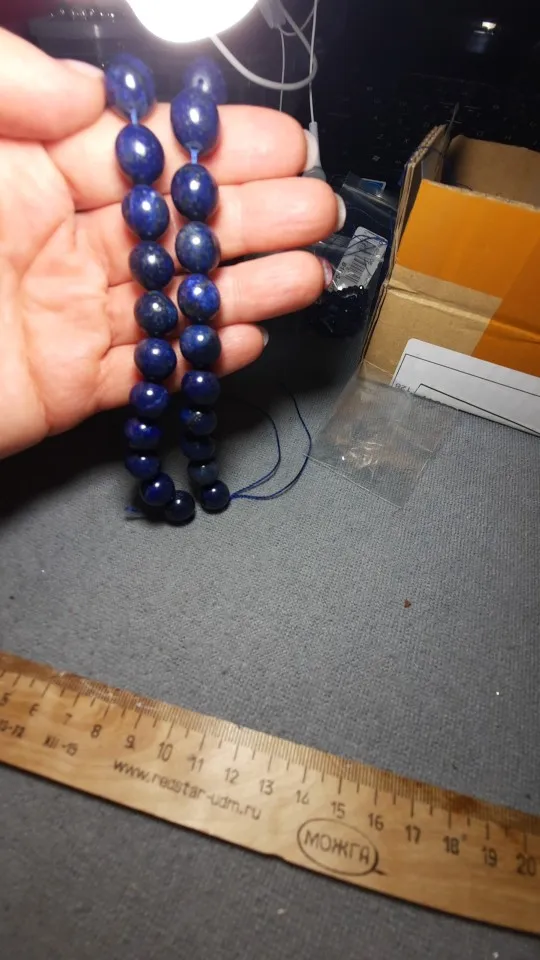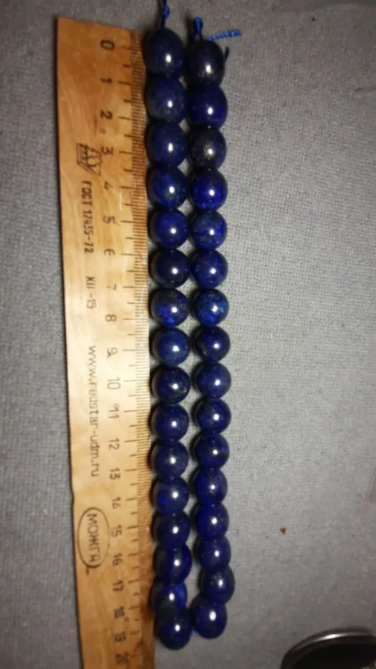 Лазурит заказываю здесь второй раз. Очень красивые бусинки, мне нравятся, брака нет. В этот раз 8 мм пришло 45 бусин, зато 10 мм 49 бусин. Доставка менее месяца, пришел заказ в общей посылке. Рекомендую магазин и продавца. В комментарии к заказу написала продавцу - не забыть подарок - как постоянному покупателю. :)) Продавец прислал горстку пластиковых бусин, видимо, у ребёнка браслетик порвался, чтобы бусины не пропали :))))))))))) Даже не знаю.. от такой щедрости плакать или смеяться :))))))