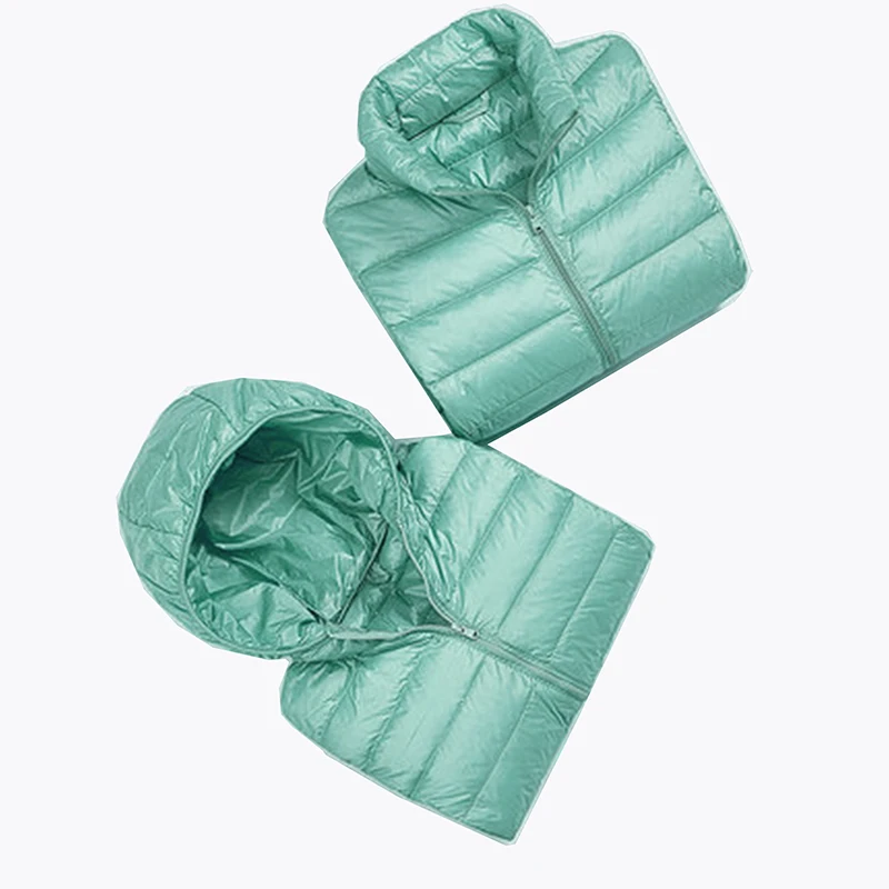 Пуховик женский ультралегкий, тонкий пуховик с капюшоном на белом утином пуху, теплая парка с длинным рукавом, портативная верхняя одежда, зима 90%