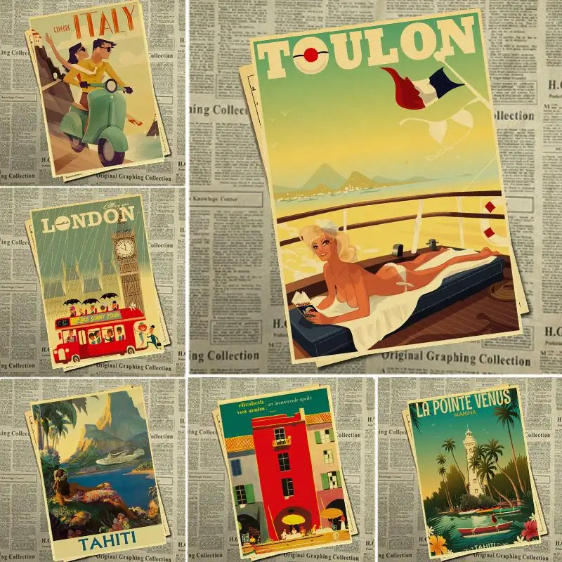Известных мировых проездных Италия Таиланд Лондон ретро постер винтажный постер высокое качество печатным рисунком основной декоративная живопись