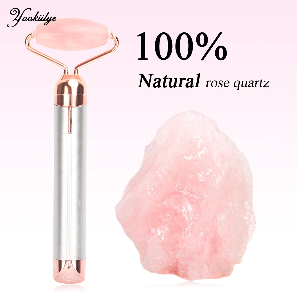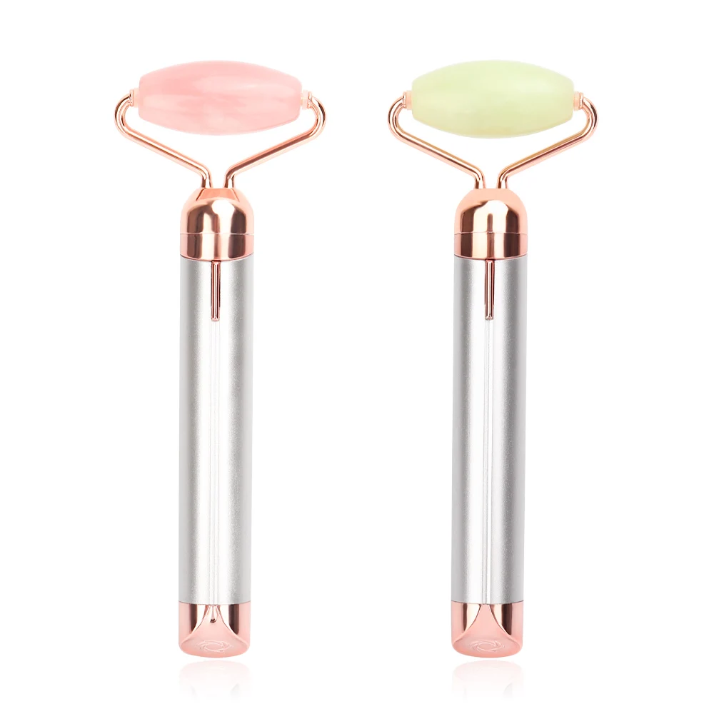Электрический Вибрационный натуральный розовый кварц нефритовый роликовый лифтинг для лица камень зеленый нефрит Кристальный ролик для лица Массажер для удаление морщин