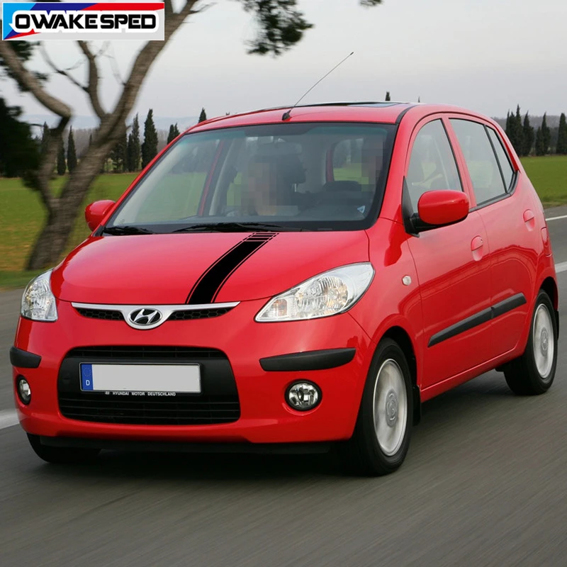 Спортивные полосы для автомобильной капота Hyundai i10 2010-2018, гоночный Стайлинг, автомобильный капот, крышка двигателя, индивидуальные наклейки, наклейка для городского автомобиля