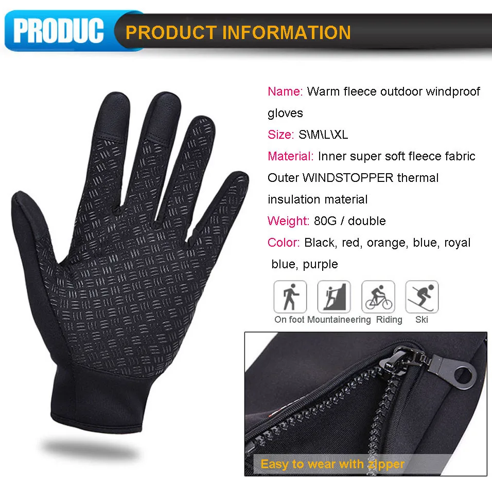 Теплые флисовые лыжные перчатки для мужчин и женщин, размеры S, M, ...