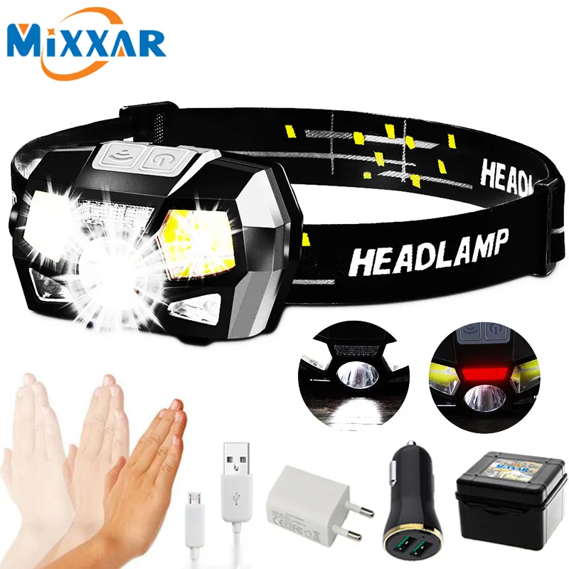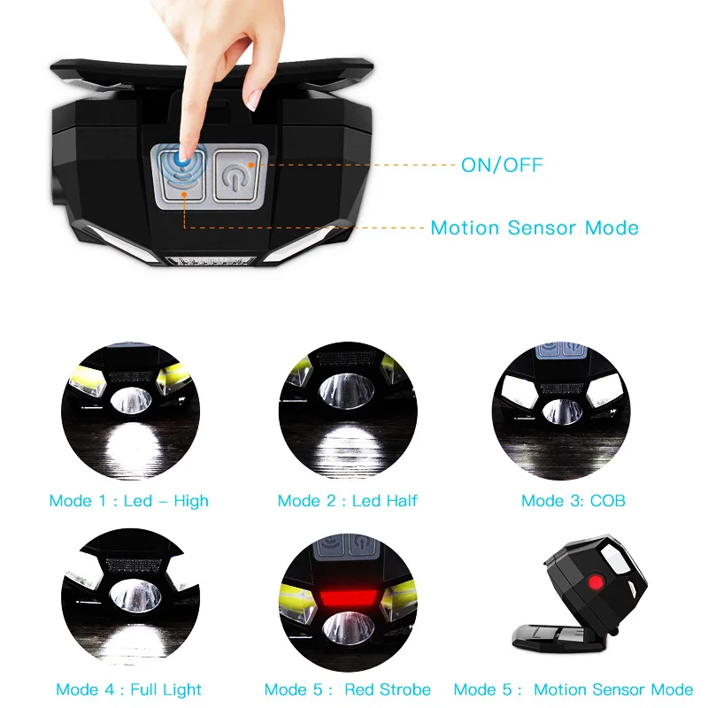 ★С функцией возможности ---Фара имеет 5 светильник режимов, широкий выбор нарядное красно-белое светильник (несколько режимов работы), чтобы сделать это самый яркий и универсальный. Есть интегрированные режимы стробоскопа, SOS, ближнего света, дальнего света и дальний и Ближний светильник. Нажмите кнопку датчика движения и махните рукой перед налобным фонарем, можно включить/выключить налобный фонарь, комфортный технологический опыт.