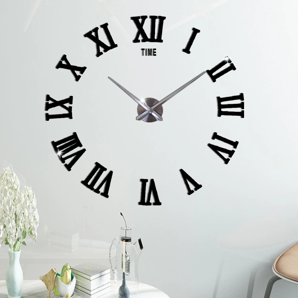 Большие Акриловые 3d-часы сделай сам, большие кухонные наклейки с римскими цифрами в современном стиле, украшение для гостиной