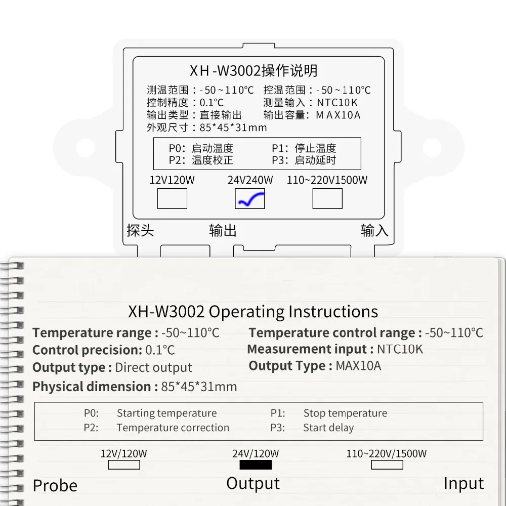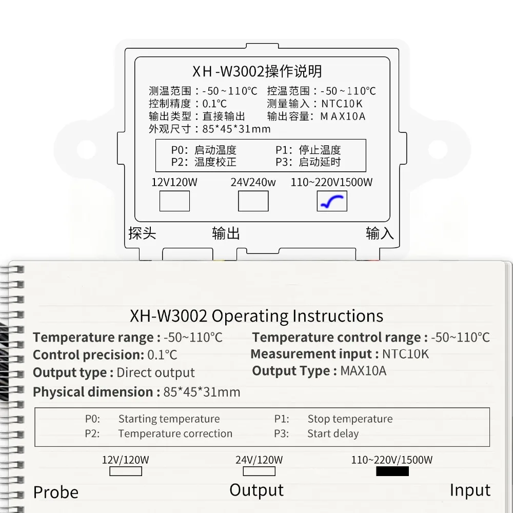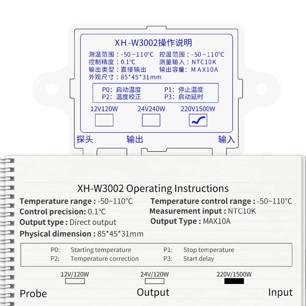 Профессиональный цифровой светодиодный регулятор температуры W3002, 12 В, 24 В, 220 В, 10 А, регулятор термостата