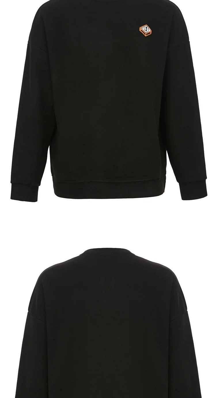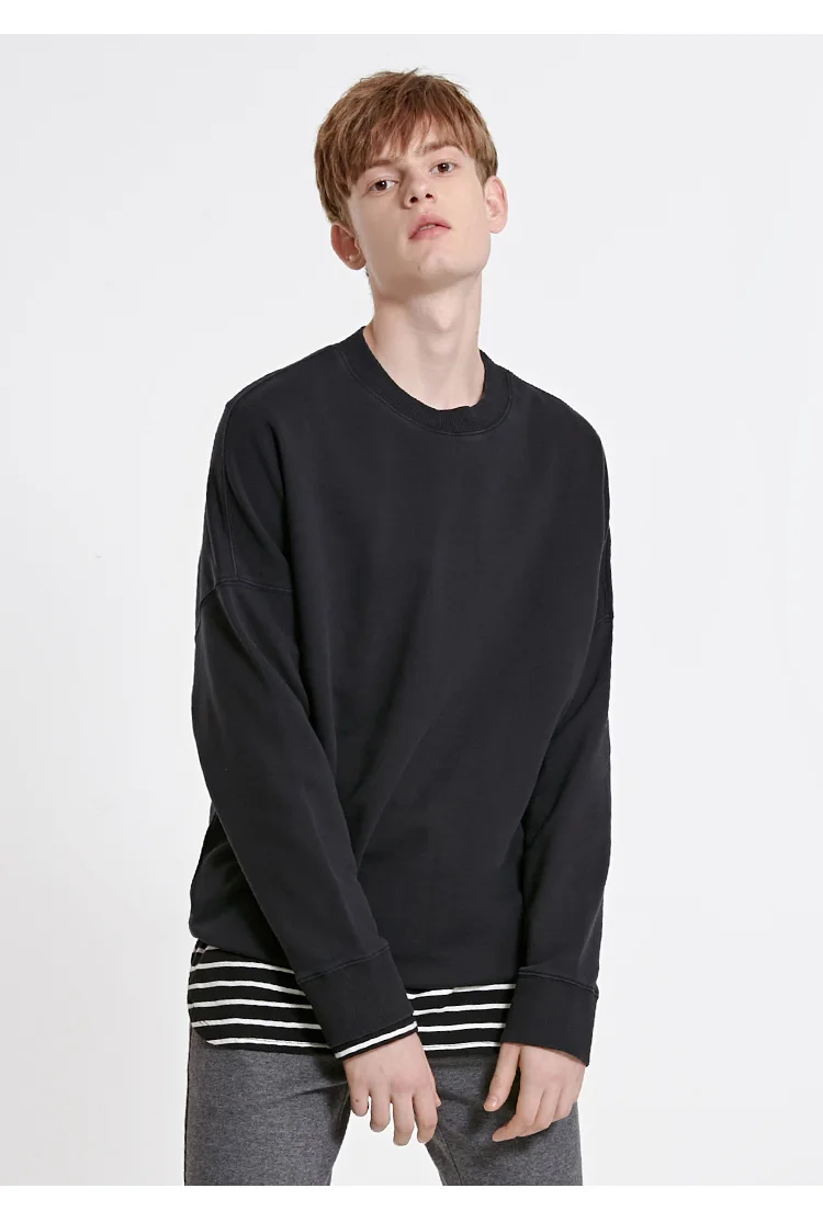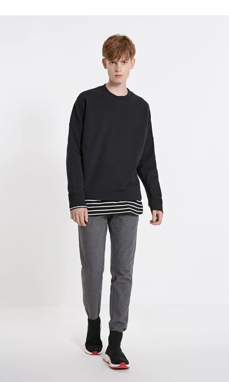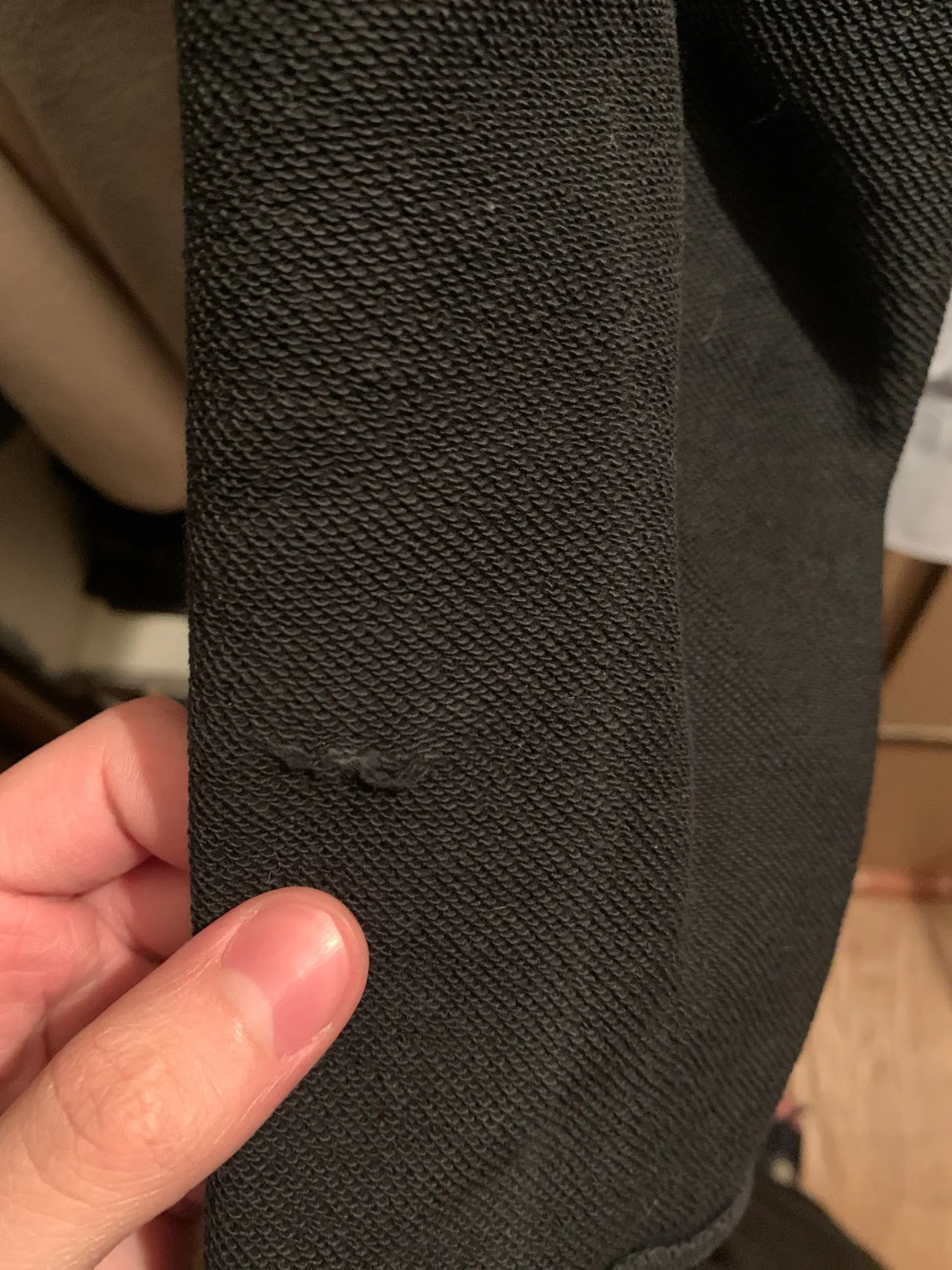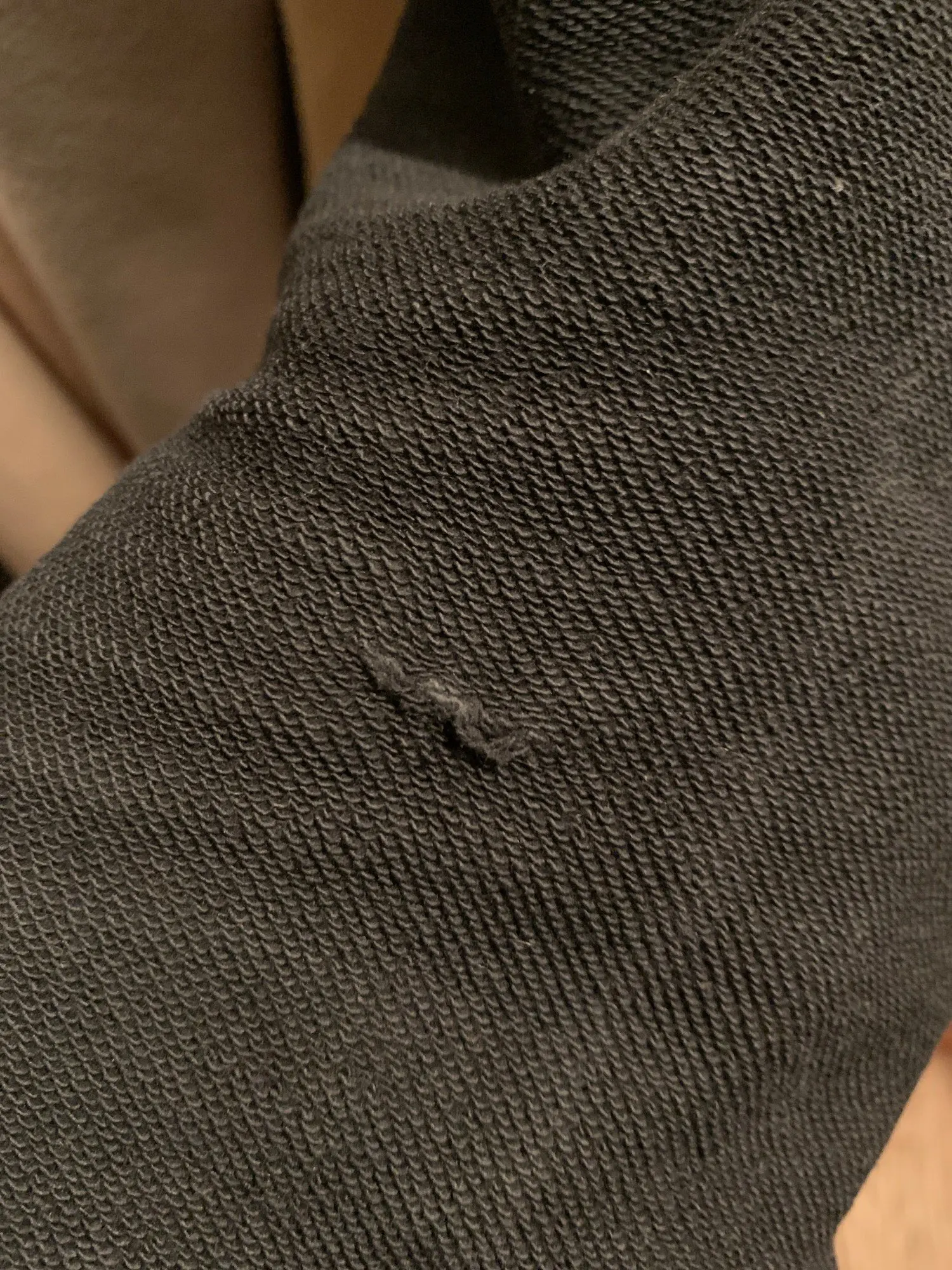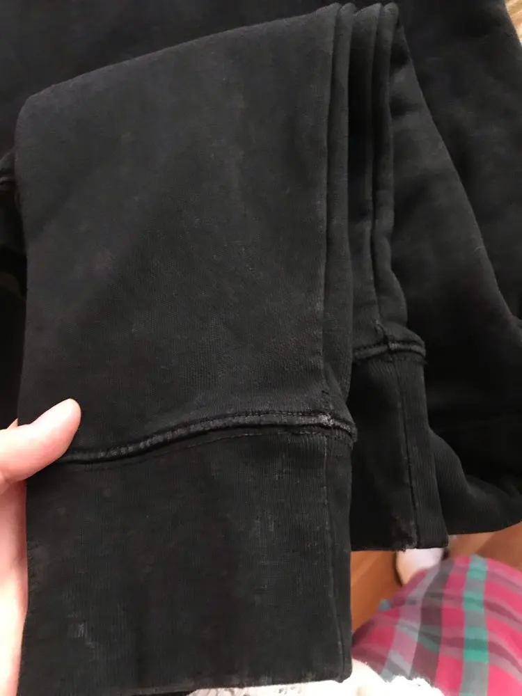 Свитшот плотный, цвет как будто выстиранный, не ярко черный. Размер М на высокого 187 см худого подростка оказался коротким в рукавах.