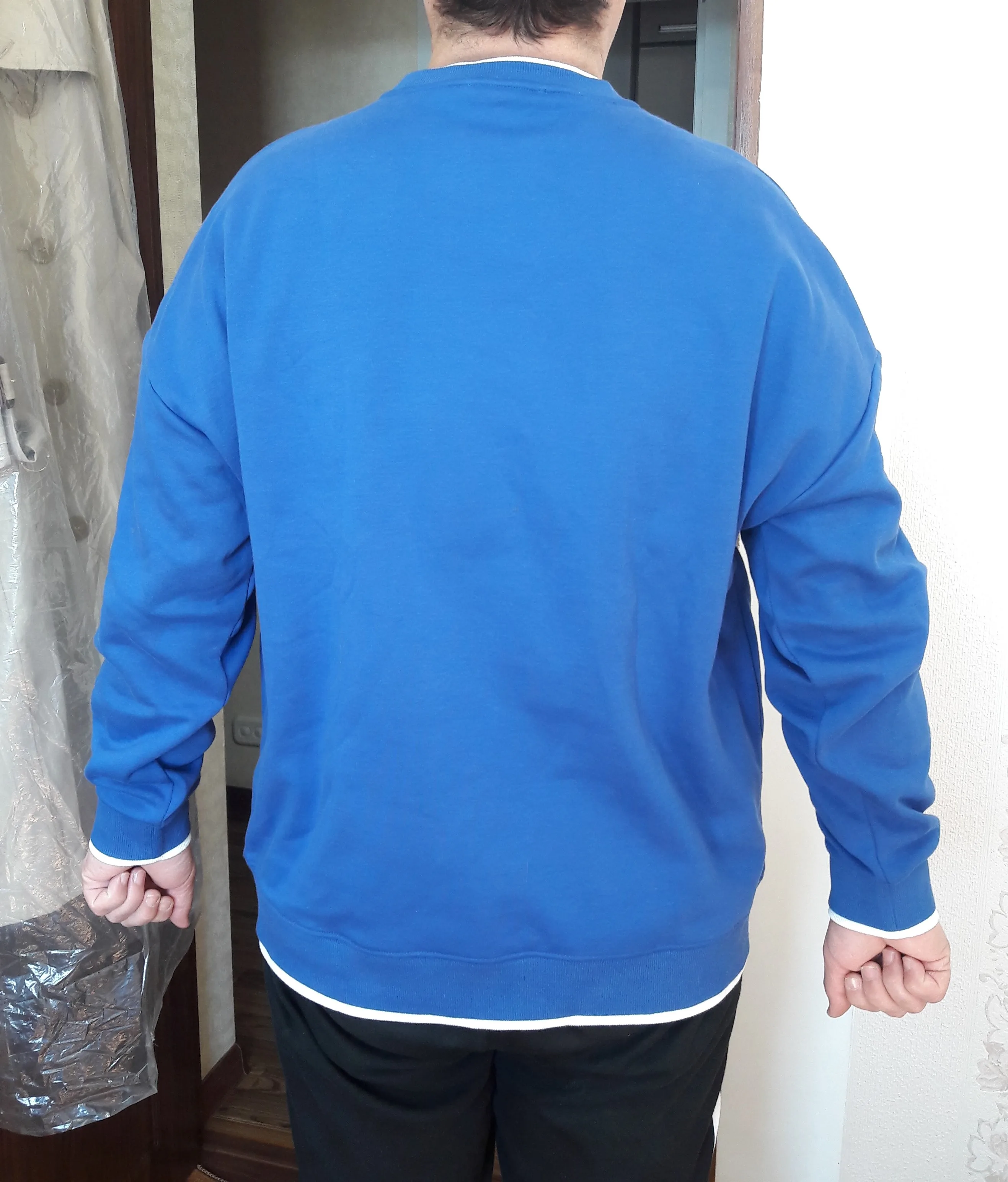 И ничего он НЕ огромный - размер XXXL, по факту длина 77 см, ширина груди 136 см (см.фото). На мужа - рост 187 см, ОГ 112 см - сел нормально, без излишнего оверсайза, хотелось бы подлиннее и пошире сантиметров на 10. В реальности цвет такой же, как на фото продавца. С начёсом, похожим на флис, тёпленькая. Основаная ткань гладкая, белые вставки в рубчик, будь они гладкими, смотрелось бы лучше, так смотрится немного дёшево. Считаю, что эта модель больше подходит для женщин и подростков. У продавца в описании полная неразбериха, сразу несколько разных моделей разного качества, в отзывах то же самое - мистические розы, вытертые швы и интерлоки, материал, похожий на вельвет, и не поймёшь, есть начёс, нет начёса. И никто не указывает точную ширину груди и длину изделия - неужели так трудно приложить сантиметр и сфотографировать? В этом же магазине была подобная история со штанами, в описании сразу несколько моделей не смогла выбрать. Цена 17,57$.