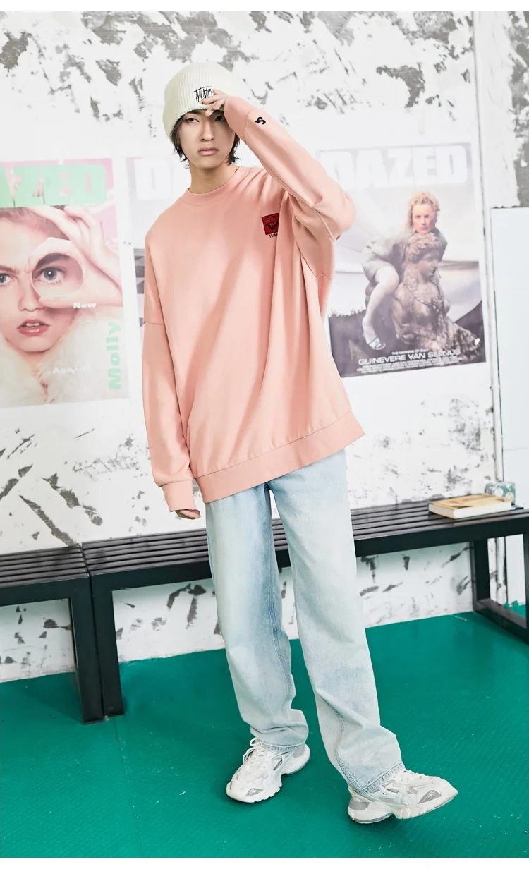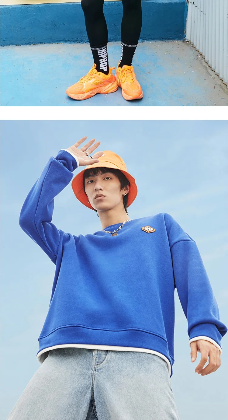 свитшот огонь. тяжеленький плотный хлопок. Как многие и писали, размером больше брать не надо. На М-ку можно взять и S, но мужа устраивает - оверсайз фасон. но таскать у него не получится - на женскую S огромный, рукава длиннющие)) подгибать некрасиво - внутри петелька доставка быстрая - почтой России меньше полутора недель.