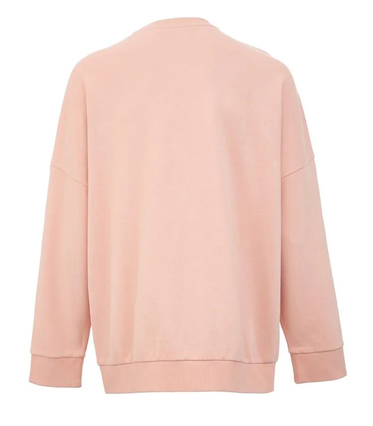 Отличный свитшот, красивый, уютный, комфортный. Заказывала для дочери, мерила на себе. Рост 170, ог 107, об 112. Как видите, сидит отлично, оверсайз. Будет классно и под короткую куртку и джинсы с ботинками, так и под пальто и черные брючки. Качество как всегда в этом магазине отличное. Доставка три недели в Брянск, почтой России. Теперь перешла на получение в Пятерке. Рекомендую от души!