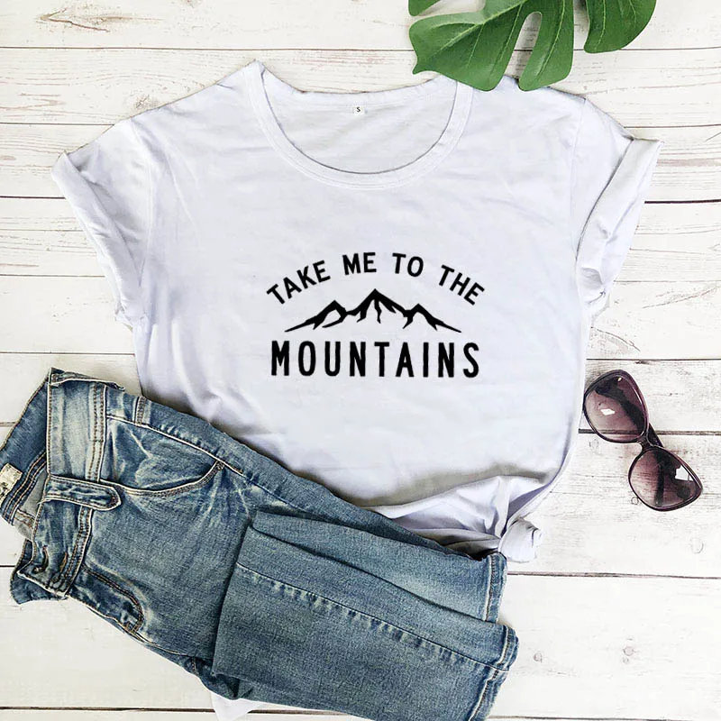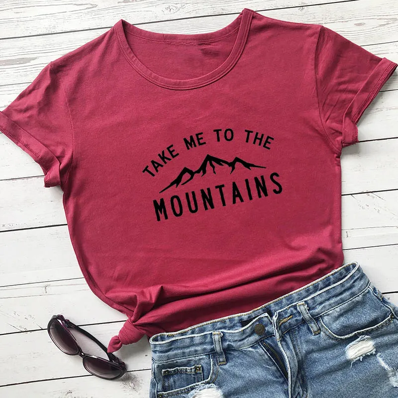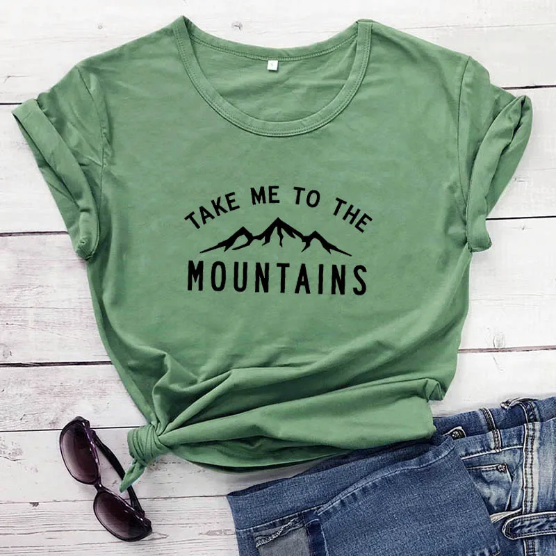 Женская забавная футболка из 100% хлопка с принтом Take Me To The Mountain, одежда для кемпинга, топы унисекс